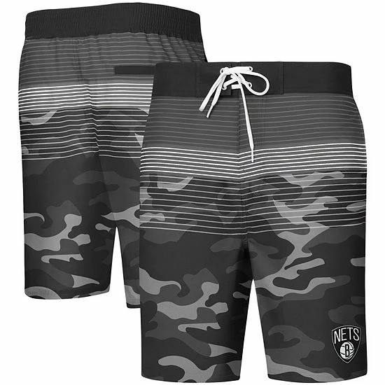 Take a dip in some Brooklyn Nets gear this season with these Wave Camo swim trunks from G-III Sports by Carl Banks. These are designed to dry quickly while also providing a comfortable fit thanks to the hook and loop closure and lace-up front. With the Brooklyn Nets logo showcased on the leg, these shorts are perfect for any loyal supporter.