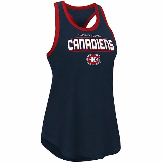 Put this trendy Showdown tank top from G-III Sports by Carl Banks in your rotation of Montreal Canadiens gear. Featuring a racerback cut, this top features a vibrant Montreal Canadiens design with contrast-color trimming for a touch of charm. Slub fabric gives you a more translucent look.